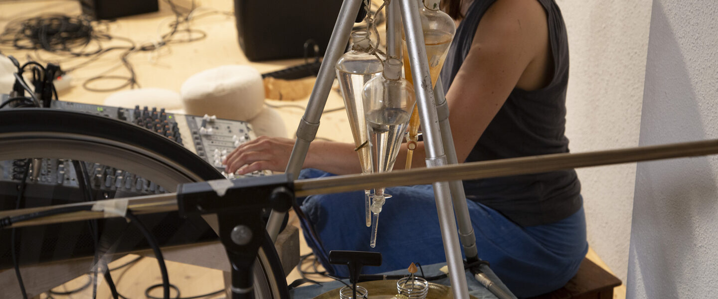 Die Audiokünstlerin, Klangforscherin und Performerin Karen Geyer produziert klingende Objekte mit Eigenleben und baut eine Klangatmosphäre auf, stets darauf bedacht, jedem noch so kleinen Ding und leisen Klang Aufmerksamkeit zu schenken. Der Zufall, wie der Wandel sind bei dieser faszinierenden Geräuschmusik zentrale Themen.br Dabei rumpelt die Spaghettipfanne mit siedendem Wassel dumpf und der Ventilator bläst einen Papierstreifen in die Horizontale. Ob analog oder mechanisch angetrieben, ihre Objekten knistern, knattern und klacken und verleitet zum genauen Hinhören.br Es ist das erste Konzert der Reihe „Aug und Ohr“ welches nun als ein Livestream aus dem Künstleratelier in der Gallusstrasse 6, in Zürich stattfindet. In dieser Konzertreihe werden die visuellen Möglichkeiten bewusst ausgeschöpft und samt der akustischen Übertragung als Teil des Konzeptes betrachtet. In dieser Konzertreihe werden Künstler vorgestellt, die mit ihren Schaffen die Grenze zwischen den verschiedenen Sinneswahrnehmungen überschreiten und verschmelzen lassen.